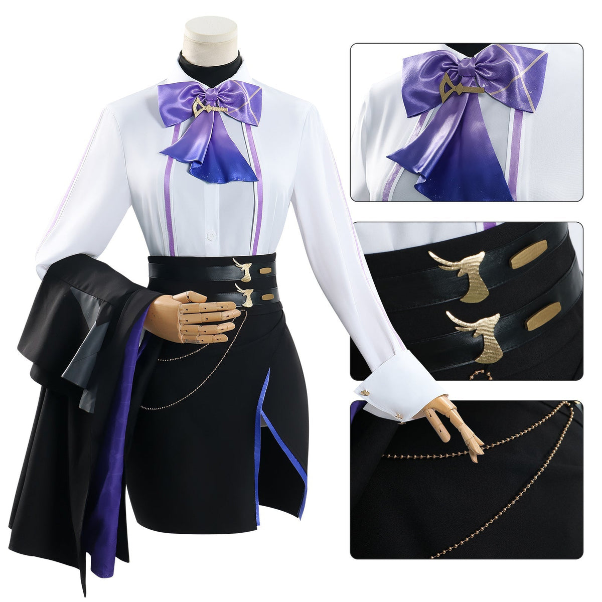 Included Items: Coat / Shirt / Undercoat / Skirt / Hat / Pantyhose / Bow at the neck / Collar / Earrings / Leg bracelet / Waist chain. The wig shoes and bag are not included in the fullset.
