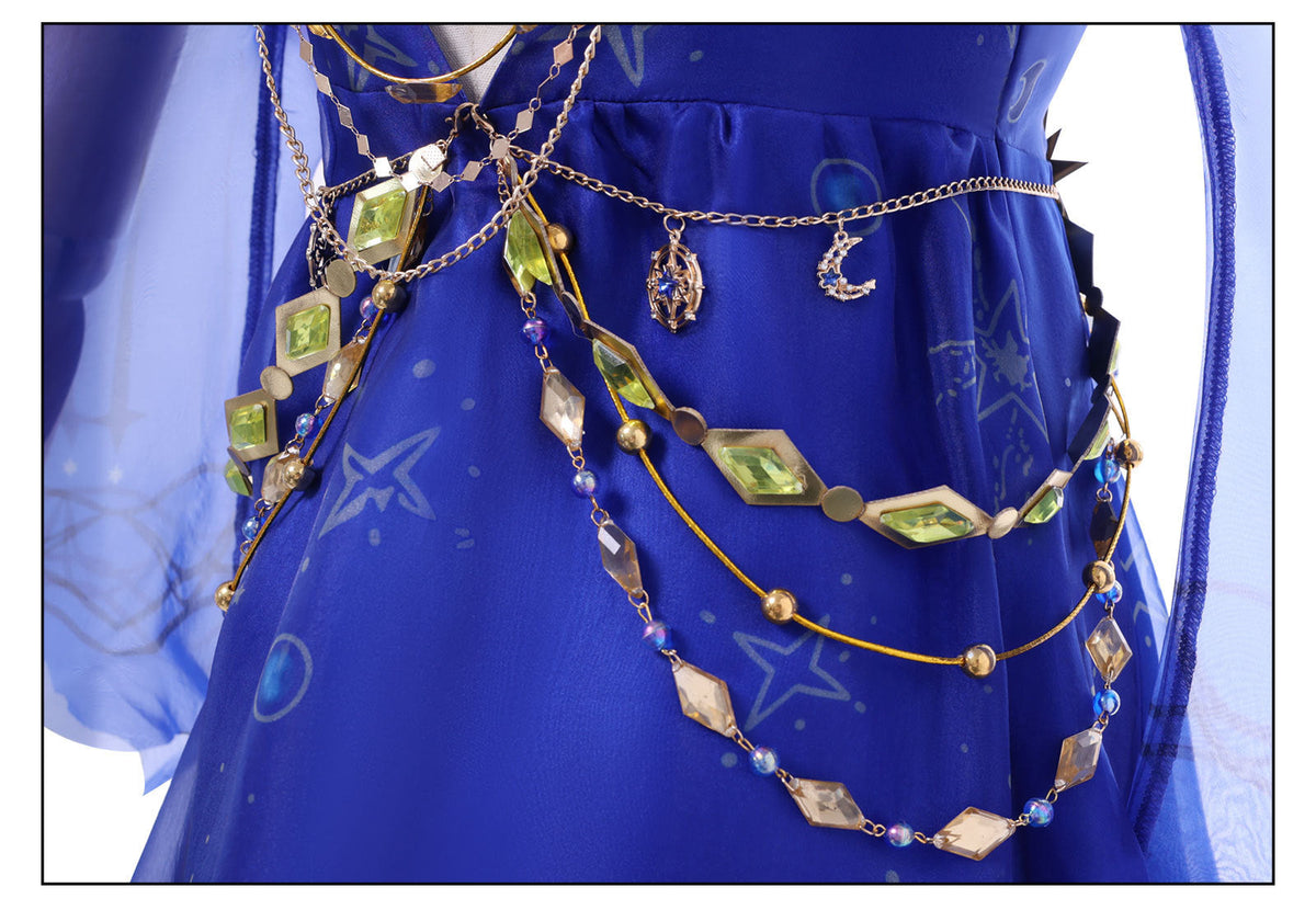 Included Items: Dress / Headpiece / Left waist accessory / right waist accessory / Wrist chain / waist accessory / Back chain / Neck accessory / Shoulder strap