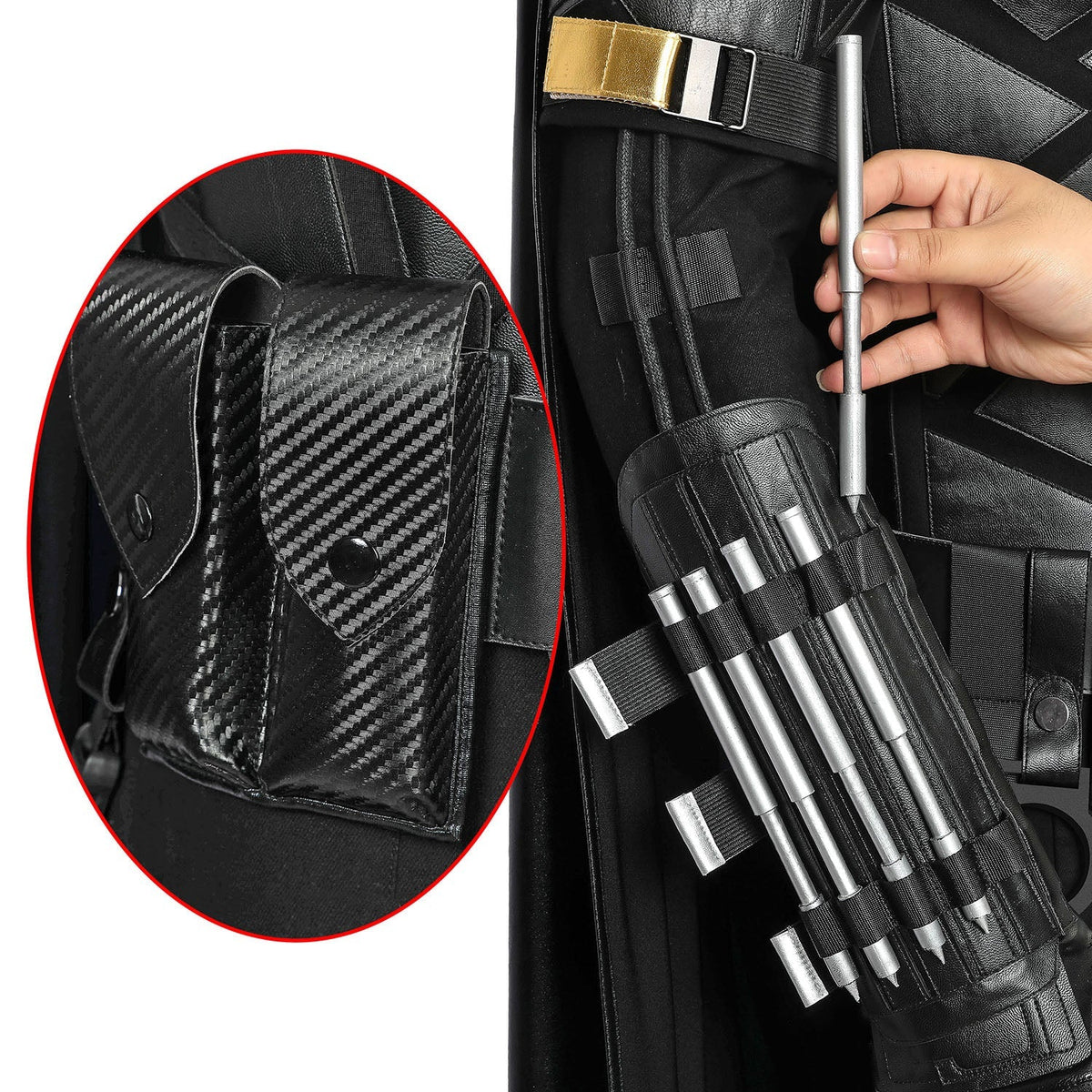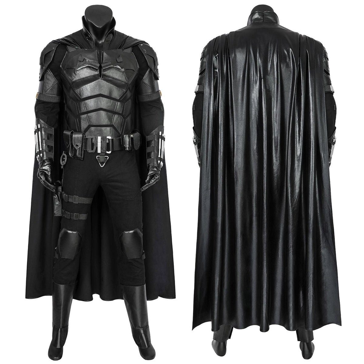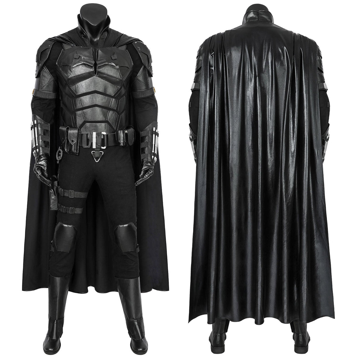 Included Items: Vest, Batarang, jumpsuit, shoulder armor, decorative pendant, arm guards, belt + holster, gloves, shoe covers, wrist guards, cloak, boots, mask (Boots and Mask not included in the fullset)
